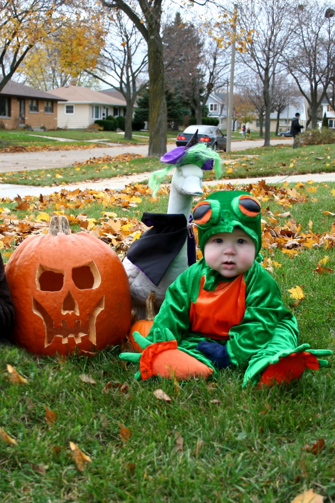 Getting ready for Trick or Treating - Connor was a froggie!